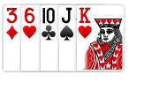 STRAIGHT : kombinasi kartu ini sama dengan STRAIGHT FLUSH, bedanya kalau STRAIGHT tidak memandang bunga, bunganya boleh bebas , misal : 4 â™  - 5♥ - 6♦ - 7 ♣ - 8♦ atau 10♥ - J ♣ - Q â™  - K♦ â€“ As ♣