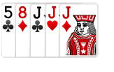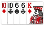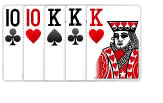 THREE OF KIND : Kombinasi kartu ini hampir sama dengan FOUR OF KIND, bedanya THREE OF KIND hanya membutuhkan 3 angka kartu yang sama. Misal : As♦ - As♥ - As â™  - 8 ♣ - 10 ♣ atau 8 ♣ - 8♦ - 8♥ - 4 â™  - 1♦